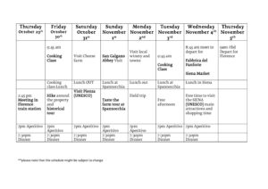 A tavola Weekly schedule 2026